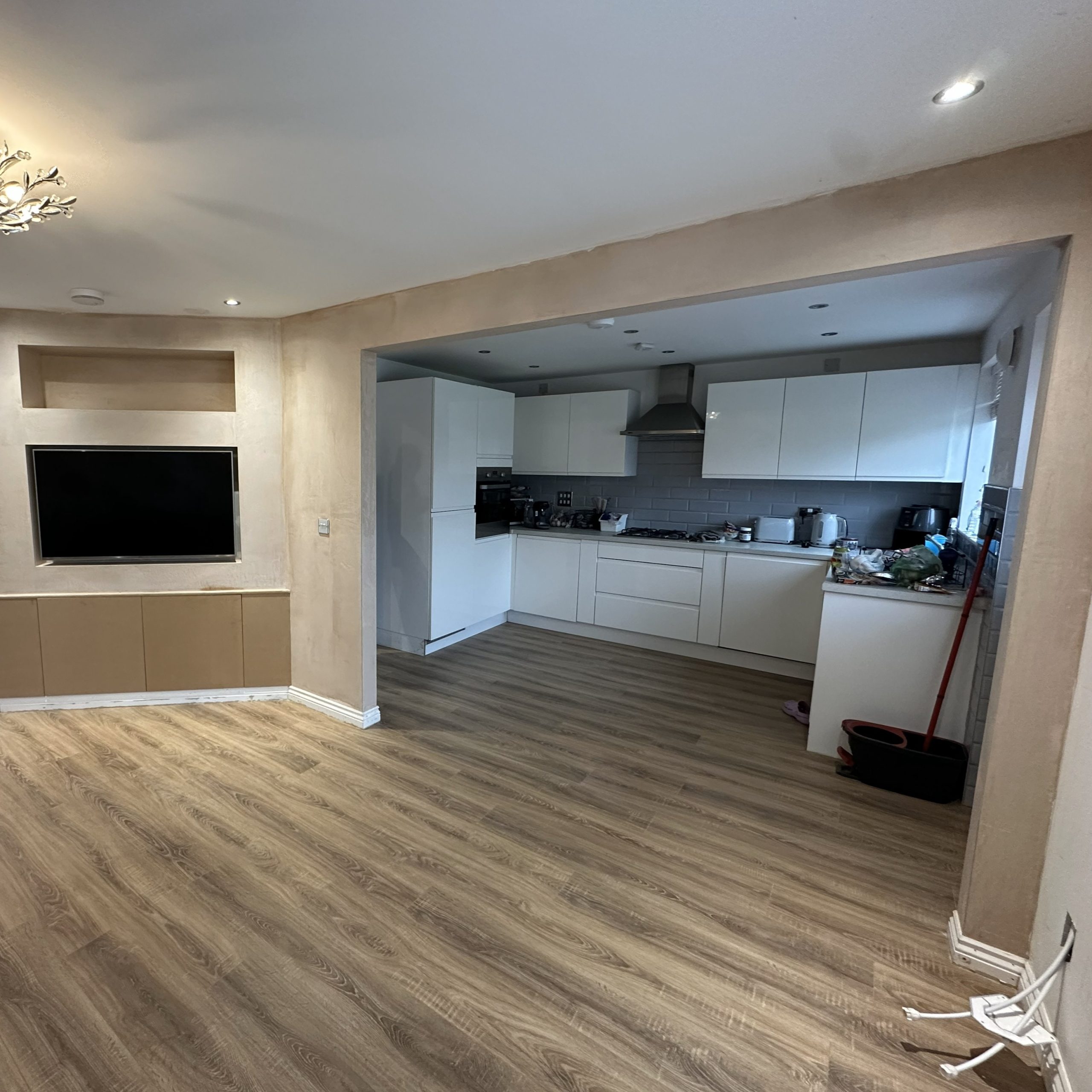 End result was fantastic with a kitchen/diner/living room arrangement perfect for entertaining all in one room.