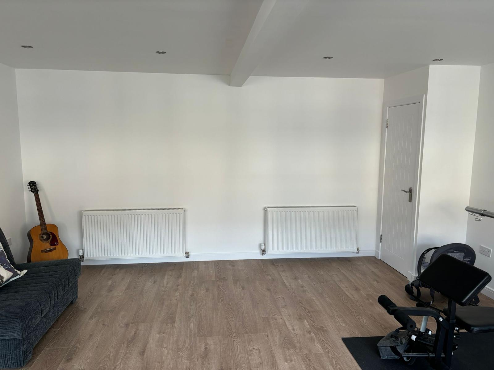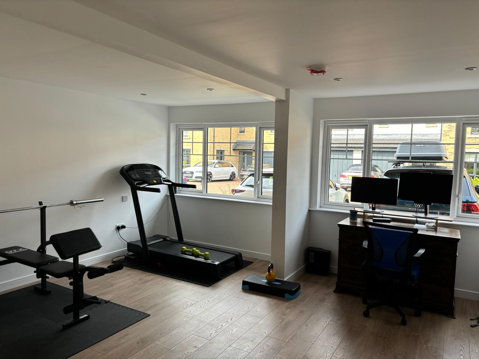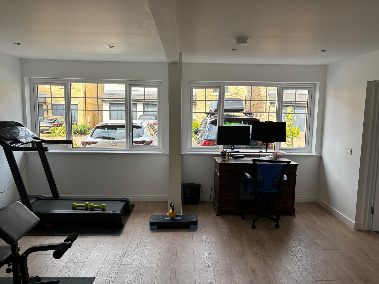 Full double garage conversion, to create an open plan office space with gym area.